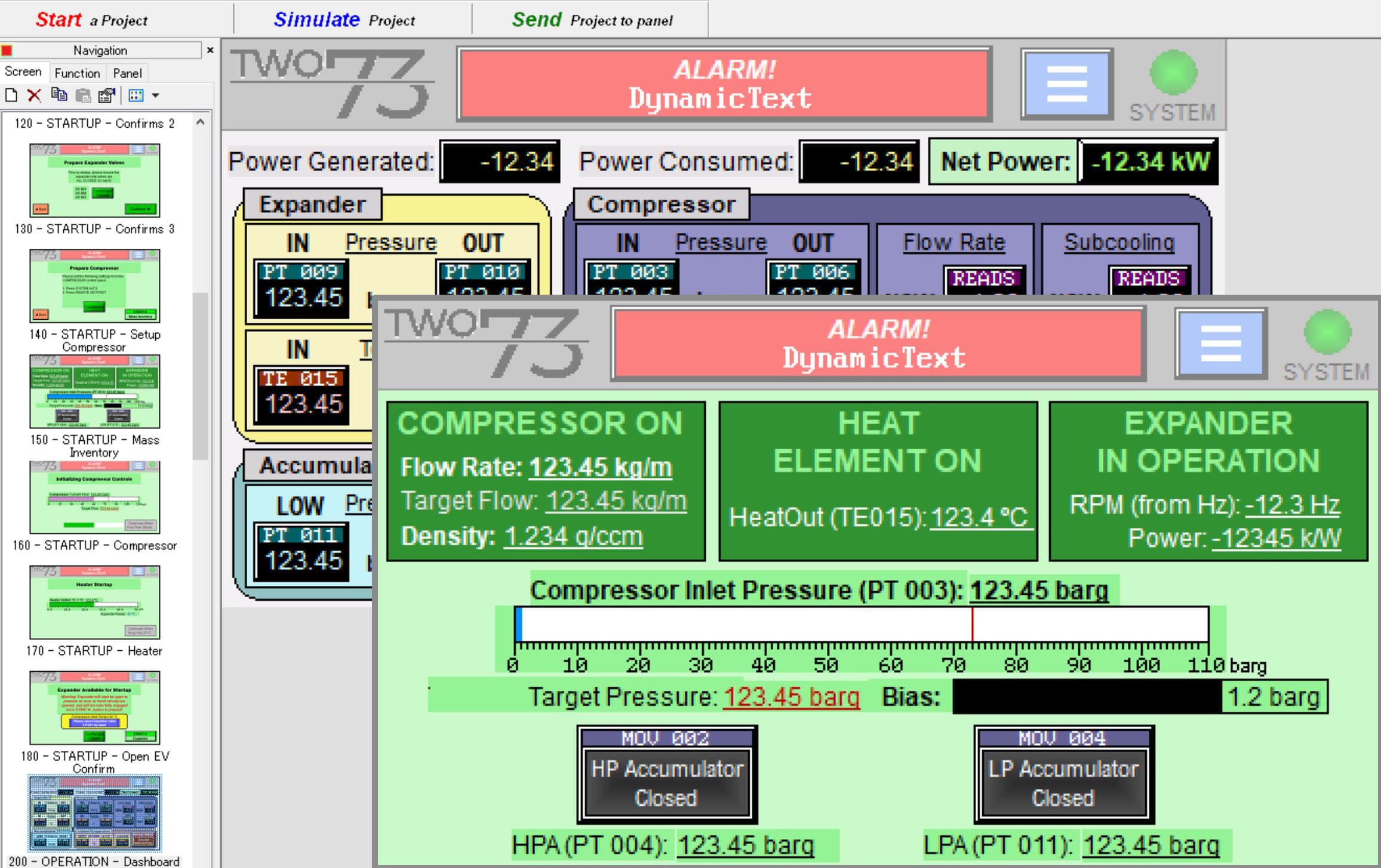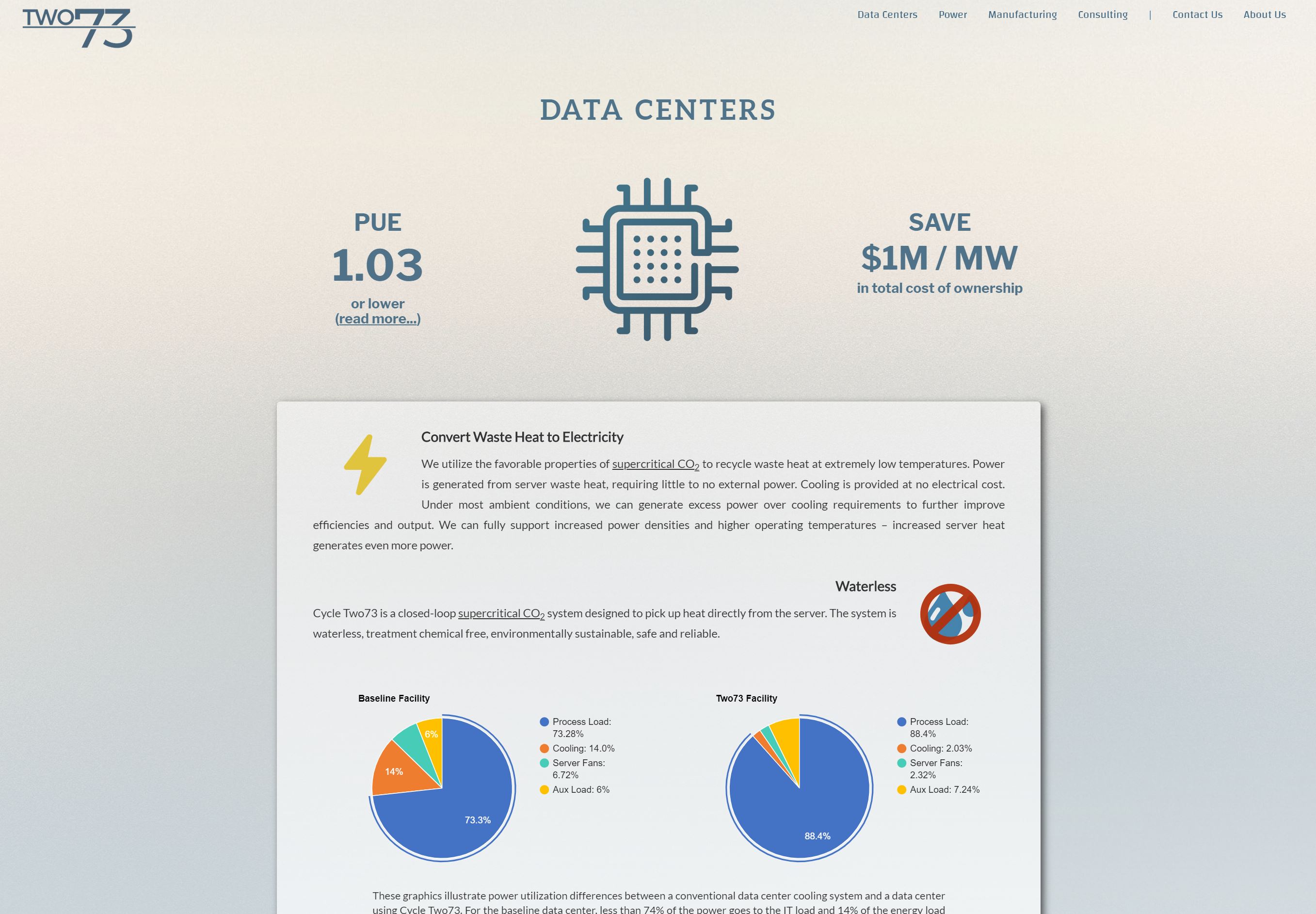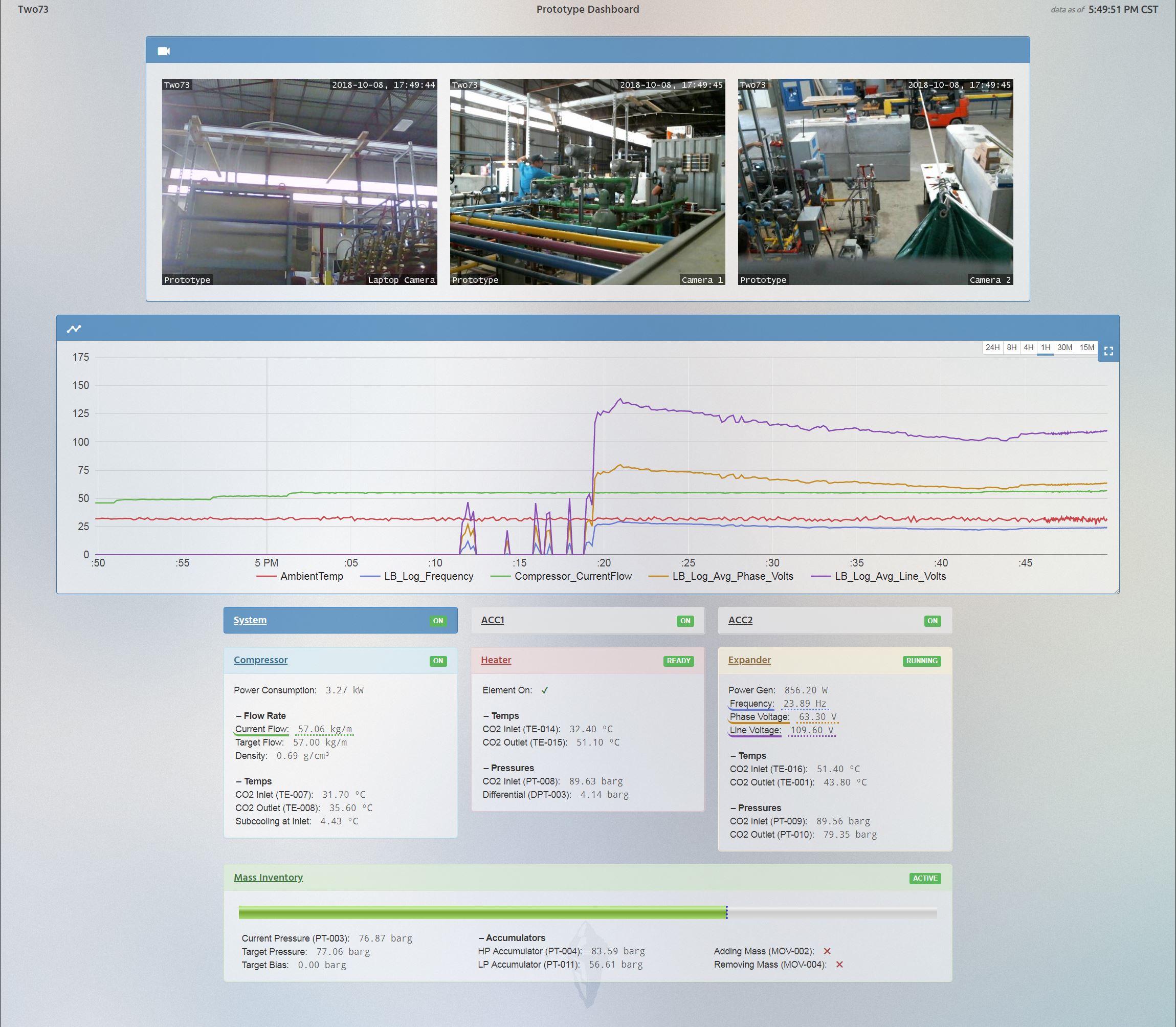 Two73 was a joint venture between Autry Industrial, a startup I co-founded, and Nooter/Eriksen, the world's leading supplier of heat recovery steam generators. Our patented Cycle Two73 was designed to provide cooling for datacenters at extremely efficient energy costs by using a proprietary high-pressure CO2 loop to recover energy from waste heat. On this project, I was the principal developer on controls (PLC, ladder-logic), logging (Modbus, Python), database storage (SQL), web interface (HTML, CSS, JavaScript, BootStrap), and HMI (PLC interface).